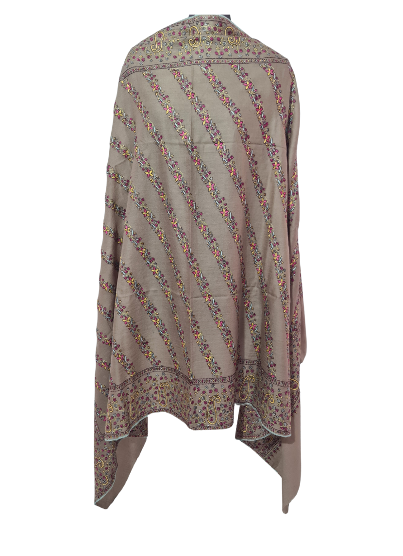 The Tosha Shawl, radiating brilliance and allure, showcases the exquisite Sozni Embroidery across its soft and warm fabric. The masterful needlework features charming vines and intricate Bootis, reflecting the artistry and elegance of the craft. Hand-spun and hand-woven, this shawl is a testament to the skill, dedication, and passion of the artisans who pour their heart and soul into creating such masterpieces.